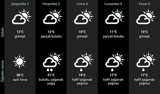 - Sabah / öğle / akşam için hava tahmini