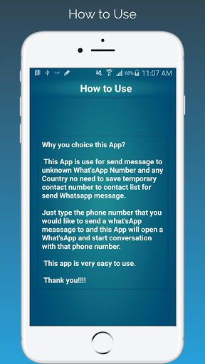 sadece bir uygulama mesajı göndermek istediğiniz telefon numarasını yazın ve bu uygulama bir şey açacak -App ve bu telefon numarası ile konuşmaya başlayın.