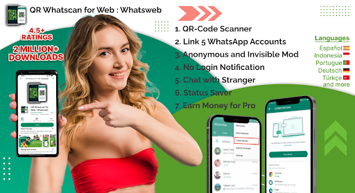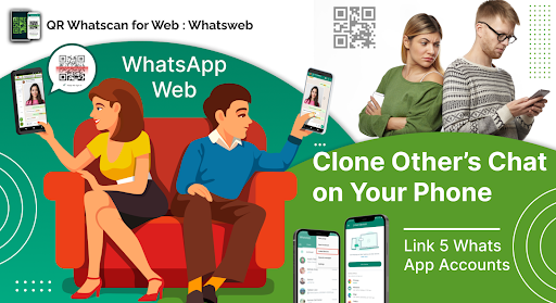 Whatscan Clone Chat: Watsaptan web Tarayıcı, okuyucu ve QR kod oluşturucu ile verimli ve hızlı bir QR kod tarayıcıdır. Qr kodu, Flaş Işığı, Ses ve Titreşim kontrolünün daha fazla özelleştirme özelliğine sahiptir. Web için whatsweb tarayıcı uygulaması, whats çok yönlü whatstools, whatschat, Watsaptan web