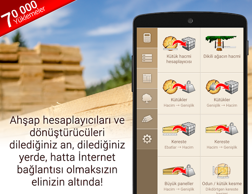 Ahşap hesaplayıcıları ve dönüştürücüleri dilediğiniz an, dilediğiniz yerde, hatta İnternet bağlantısı olmaksızın elinizin altında!