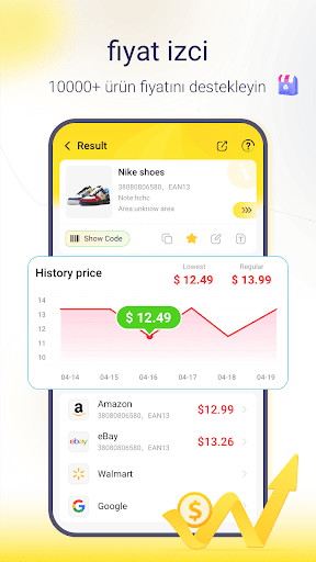 "QR kodları ve ürün barkodları her yerde! Bir mağazada bir ürün kodu taradığınızda, barkod tarayıcı size en iyi çevrimiçi fiyatları gösterecektir, bu yüzden bir daha asla fazla ödeme yapmazsınız!