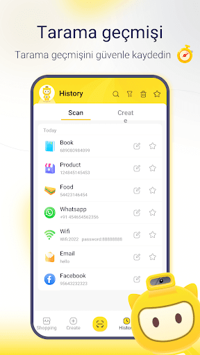Taranan ve oluşturulan tüm QR kodlarının bir kaydı kalıcı olarak kaydedilir ve geçmiş listesi, ziyaret edilen yerlerin ve QR kod bağlantılarının geçmişini yönetmeyi ve temizlemeyi kolaylaştırır.