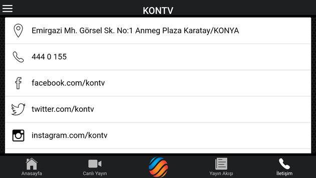 Kontv, 10 Haziran 1992’de kuruldu. Türkiye’nin ilk bölgesel yayın yapan kanalı olarak tarihe geçen Kontv, 2004 yılından buyana uydudan tüm dünyaya yayın yapmaktadır. Kablolu Yayın, Tivibu, DSmart, Turkcell TV, IPTV, IPETTV, Teledünya ve Karasal yayını bulunan Kontv, Türkiye’nin önde gelen kanallarından biridir.