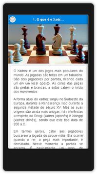 Aqueles que jogam xadrez parecem ser mais intelectuais que os outros. Bem, isso é um fato, trata-se de algum tipo de respeito adquirido pelo conhecimento do jogo. Como Jogar Xadrez foi feito para aqueles que querem aprender e para aqueles que já jogam xadrez regularmente. É muito tranquilo aprender, o aplicativo divide tudo em capítulos diferentes, bem explicados. Que tal impressionar as pessoas com um bom jogo de xadrez, locais das peças, como batalhar no tabuleiro e outros. Aprenda como jogar xadrez e se delicie com esse jogo.