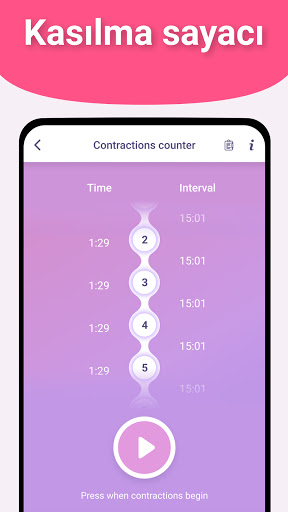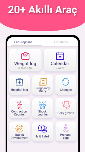 Hamile kadınlar için 24/7 nitelikli yardım: Psikolojik destek, doktor konsültasyonları, gebelik günlüğü, kasılma zamanlayıcısı.