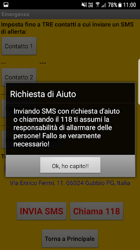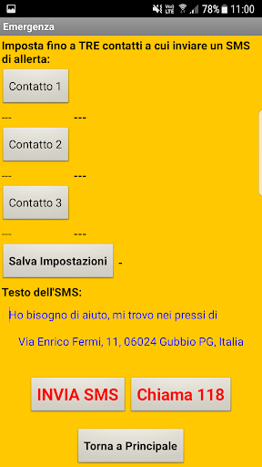 - Pesquisar o desfibrilador mais próximo da sua localização e use o Google Maps para obter instruções para alcançar o endereço desejado; - Configure até três contatos para os quais , em caso de emergência, envie um SMS contendo uma solicitação de ajuda, incluindo o endereço no qual você está no momento do envio;
