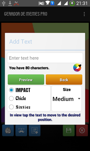 Create and share custom memes on any social network. Add multiple texts, and widgets, you can now build your gallery of memes, and also access the gallery of fame to vote and share memes created by other users.