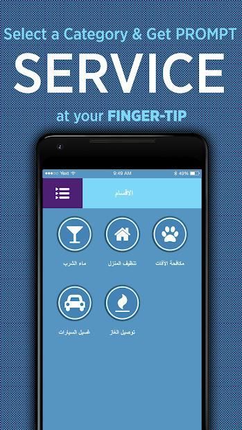 Any service is to provide a unified platform for the provision of all domestic and other services in the Kingdom of Saudi Arabia in the early stages and will facilitate the application of the process of communication between service providers and service seekers in all that may be needed by customers will be found in the unified application platform, Water, gas cylinders, plumbing, electricity, pest control, mobile repair, wedding and banqueting services and much more.