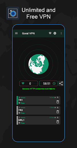 Tescilli VPN protokolümüz, istikrarlı, özel ve güvenli internet bağlantılarıyla hızlı VPN hızları sağlar.arabelleğe alınmadan.İstediğiniz zaman herhangi bir müzik çalarındaki popüler şarkıları dinleyin.Hızlı Goral VPN sunucuları ile oyun deneyiminizi geliştirin.BR>