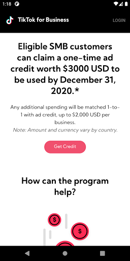 * Note: Eligibility will be based on the documents you submit during registration, including business ID, legal name of business, company phone number, name of the legal representative and business license (optional). Amount and currency vary by country. Ad credits apply to future costs of advertising inventory purchased on the Ads Manager by the eligible Ads Manager account. Ad credits are non-transferable and not redeemable for cash. The program is currently only available for companies who are registered in the following regions: the United States, Saudi Arabia, and the UAE.