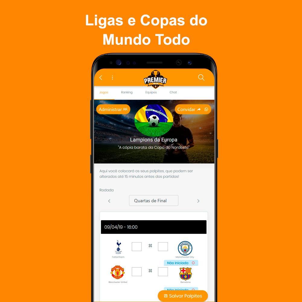 E além da praticidade que o o site www.bolaopremier.com proporciona, temos o APP pronto para salvar você e seus amigos, assim você conseguirá acessar de onde estiver, em qualquer plataforma, e fazer aquela zoeira nível 7x1.