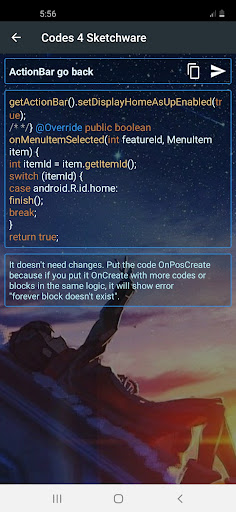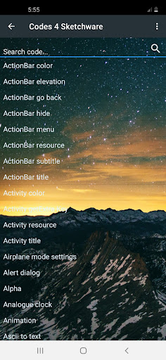 Kodlar 4 Sketchware, Sketchware'i kullanarak uygulamaları oluşturmak için Java Kodlarının büyük bir listesini sağlayan bir uygulamadır. Ayrıca onları Android Studio'da kullanabilirsiniz.