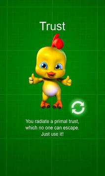 The huge fun for the whole family. The famous chicken from Chicken Blast shows you how it works. Touch the display with your finger and it starts recording your micro-movements instantaneous. After the recording time the high-tech analysis starts, using top-notch 3d-graphics and realtime particle systems based ont he previously recorded movement. Since this is an app to fool your friends and nothing to take too seriously, just have fun! It's always a good joke or prank on your friends, and you will be surprised how good it matches most of the time. The multiple level analysis is followed by the cartoon representation of your emotional-result. Laugh-out-loud situations included! Simply the best, awesome party app for children and adults alike.
