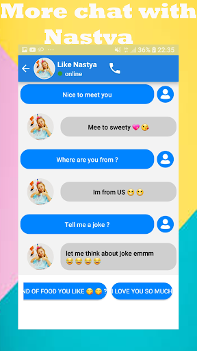 With this application, you can persuade your friends that you are showing them that you are friends with like Nastya by talking to Nastya on your phone in a video chat or voice call.