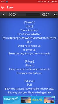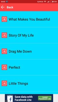Immediately download the application One Direction Song Lyrics and enjoy the collection of your favorite songs from One Direction Song Lyrics this app is very easy to use