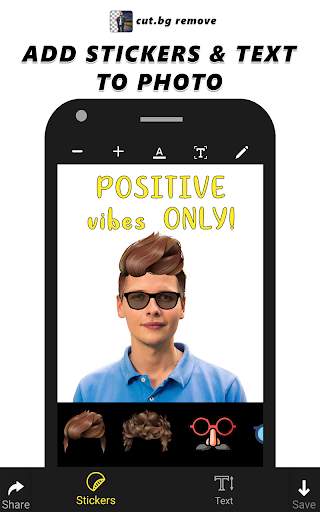 Fotoğraf arka planını silmek ve istenmeyen nesneleri fotoğraftan kaldırmak ister misiniz veya fotoğrafınıza metin ve çıkartma eklemek istiyorsanız Cut.BG Kaldır, aradığınız uygulama. Arka plan silgi ile birkaç saniye içinde görüntüyü sil. Cut.bg ile kaldırın, sadece silmek istediğiniz bölgeye dokunmanız gerekir ve otomatik silgi aracı sizin için işin geri kalanını yapacaktır. Android için çok kullanışlı bir fotoğraf arka plan silgi uygulaması. Silgi kullanarak fotoğraf arka planı da manuel olarak silebilirsiniz. Sihirli Silgi, şeffaf bir arka plan elde etmek için kullanılan araçtır. Fotoğraf arka plan sökücü kullanarak herhangi bir fotoğrafın BG'yi kaldırın. Cut.BG Kaldır, arka plan değiştirici özelliğini kullanarak fotoğrafın geçmişini değiştirebileceğiniz bir fotoğraf editörü uygulamasıdır. Sihirli Otomatik Seçimi, kaldırmak istediğiniz alanı algılamanıza yardımcı olur. Galerinizden bir resim seçebilirsiniz veya kamerayı kullanarak bir fotoğraf çekebilir ve düzenlemeye başlayabilirsiniz. Cut.BG'yi kullanarak, PNG veya JPG formatında bir görüntünün arka plan sökücü ile saydam bir arka planını elde edebilirsiniz. Cut.bg Kaldır, fotoğrafınızın güzelliğini geliştirmek için fotoğraf çıkartmaları işlevselliğini de sağlar. Tamamen ücretsiz emoji ve çıkartmalar cut.bg içine yerleştirilir. Fotoğraf Sticker Editor, alacağınız bir bonus. Cut.bg Kaldır ayrıca büyük bir çıkartma koleksiyonuna sahip bir nihai çıkartma uygulamasıdır. Fotoğraflar için çıkartmalar görüntülerde ek eğlence ekler. Ayrıca fotoğraflara metin ekleyebilirsiniz. cut.bg Kaldır ücretsiz bir fotoğraf metni düzenleme uygulamasıdır. Metni saniyeler içinde fotoğraflara yerleştirin ve metninizi yazı tiplerini, metin rengi ve boyutunu değiştirerek güzel bir görünüm verin. Eğer sizinkinden unutulmaz bir resim alırsanız, ancak resminizdeki bazı nesneler tüm fotoğrafınızı bozarsa, o nesneyi Cut.BG'de tek bir tıklamayla kolayca kaldırabilirsiniz. Çoklu Kesme ve Silgi Araçları, arka plan silgisini kullanarak fotoğraf arka planlarını değiştirmenin hızlı ve kolay bir yolu sağlar. Resim çıkartmaları ücretsiz fotoğraf çıkartmaları içerir. Resmin üzerine etiket ekleyebilirsiniz. Cut.bg Sizin için zor işi yapmak için AI metodolojisini kullanın. Herhangi bir görüntü sağlamanız gerekir ve ardından ön planın etrafını kesebilir ve arka plan otomatik kaldırma arka planı, düzenlenmiş bir görüntüyü saydam bir arka planla kaydetmenize izin verecektir. Fotoğraf arka plan değiştirici, resim temizleyici, beyaz arka plan için görüntü sökücü, saniyeler içinde temiz bir arka plan ve şeffaf bir arka plan yapmanıza izin veren ana özelliklerdir. Cut.bg Kaldır, bir nesneyi çıkarırken bir resme yakınlaştırma yapmanızı sağlayacak en üst düzey bir BG sökücüdür. Sadece herhangi bir yerde kullanmak için doğru bir damga almak için Magic Silgi Aracı kullanın. Arka plan şeffaf hale getirmek için bir fotoğraf düzenleme becerisine sahip olmanız gerekmez. Arka plan değiştirici özelliği, arka planı değiştirmenize veya çekici duvar kağıtları ile arka plan eklemenize yardımcı olur. Cut.bg Kaldır, fotoğraf değiştirici seçeneği de ile hafif bir fotoğraf silgidir.