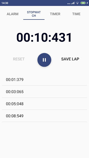 Alarmlar, zamanlayıcı, kronometre ve küresel zamanlı basit saat uygulaması.