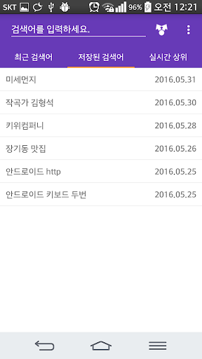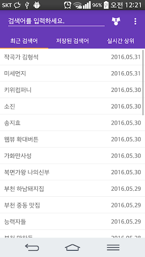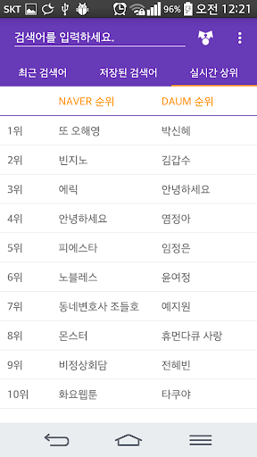 인터넷에서 정보를 찾을 때면 여러 검색 사이트를 찾아 다니게 됩니다. 이 사이트, 저 사이트 헤매이며 돌아다니기가 여간 귀찮은게 아닙니다. 은 주요 검색 사이트로 검색어를 전달하는 빠른 링크를 제공합니다. 한 번의 검색어 입력으로 모든 검색 결과를 얻을 수 있습니다! 최근 검색어는 목록에서 선택하는 것만으로 다시 검색할 수 있으며 검색어 자동완성 기능을 제공합니다. 현재 가장 이슈가 되는 내용을 바로 확인하세요!