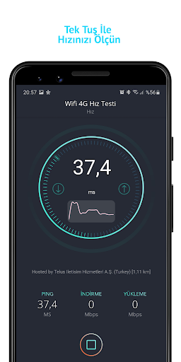 Uygulamayı telefonunuza kurduğunuzda tek yapmanız gereken test tuşuna basmak gerisini Wifi 4G Hız Testi uygulaması halledecek. Tuşa bastığınızda ilk olarak size en yakın olan sağlayıcı ile iletişime geçer.