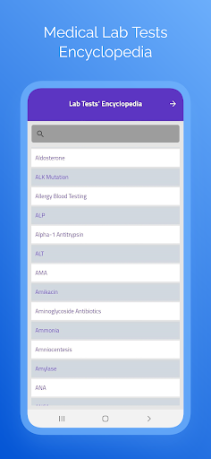 A comprehensive encyclopedia for all medical lab tests (more than 410 tests), which includes the following items for each test: