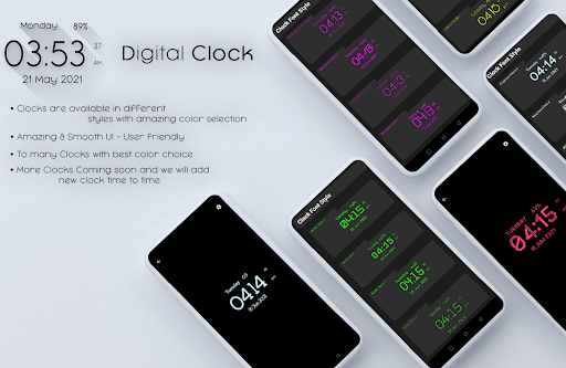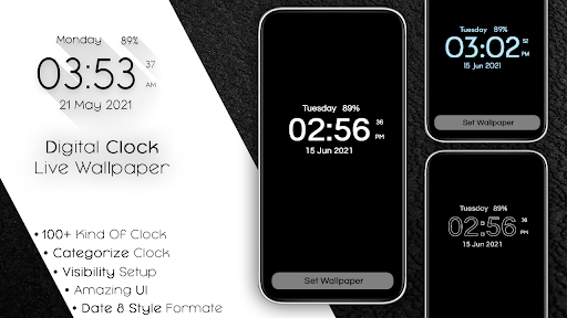Yine de Digital Clock, 10 saat kategorisine sahiptir ve her birinin mobil ekran güzelliğini geliştirmek için çok fazla seçeneğiniz olan 10'tan fazla saate sahiptir. Ekrandaki ekstra özellik göstergesiyle bugün tarih ve saati görmenize yardımcı olur.