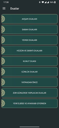• Dualar - Akşam ve sabah duaları gibi birçok farklı dualar arasından seçim yapabilirsiniz.