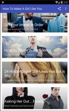 How to make a girl like you is here to help by using these simple tips that can teach you how to flirt and get a girl to trust you without putting you in the friend zone. Getting a girl to fall in love with you is not easy, but flirting with a girl and getting her to go out with you is not as hard as you may think. While you may nervous to talk to a girl you like, odds are that she is also nervous and will be flattered that you have shown interest in her.