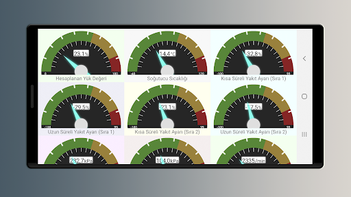 * ECU, hız, sıcaklık, voltaj ve çok daha fazlasının canlı veri panosu.