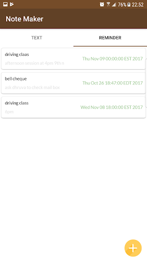 Take your important notes using this easy Note maker app on both mobiles and tablets. It lets you manage your notes easily by adding it, updating it and deleting it. New version lets you add reminder as well and get notified on your selected time with notification.