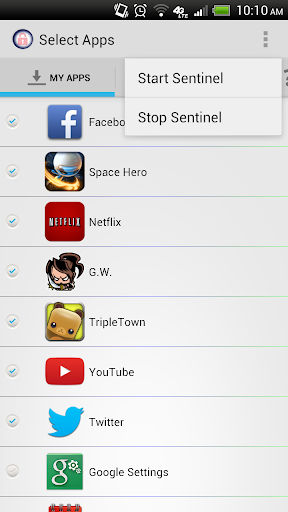 Select the apps to block, start the Sentinel Active Guard service and give your tablet to your kids.