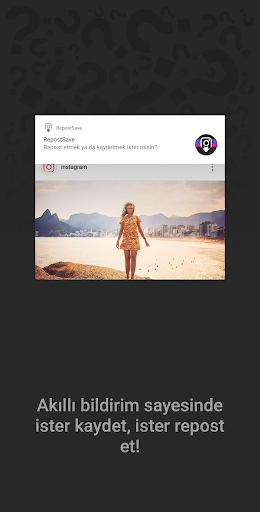 RepostSave uygulaması Paylaşım URL’si kopyalandığı an aktif olan akıllı bildirim özelliğine sahiptir. URL kopyalama işleminden sonra telefonunuzda aktif olan bu bildirime dokunduğunuzda, medya içeriği repost uygulaması içerisinde açılır. Bu aşamadan sonra içeriği kolayca indirebilir, arkadaşınıza gönderebilir ya da Instagram’da repost edebilirsiniz.