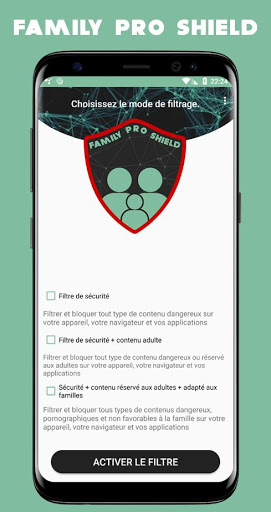 Family Pro Shield will detect and block all forms of threats not only while browsing Internet but as well when using installed applications on Your device!