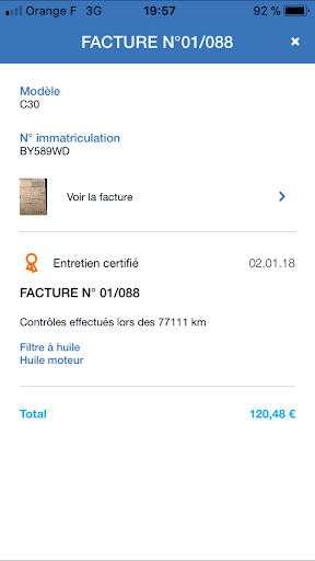 • Contrôler en un instant vos coûts d’utilisations quotidiens et le suivi des dépenses à venir sur son carnet d’entretien virtuel.