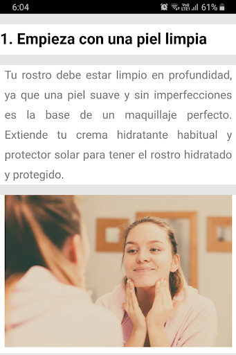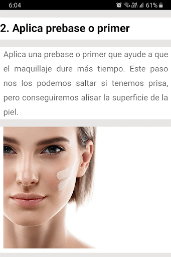 La app "Curso de Maquillaje - Tutorial Gratis Paso a Paso" contiene un mini-curso completo de maquillaje para que aprendas cada uno de los pasos a seguir a la hora de maquillarte o maquillar a otras. El maquillaje es parte fundamental en la imagen de las mujeres, pero también es un arte que debe aprenderse y practicarse. Aprende desde lo más básico hasta lo más profesional en esta aplicación 100% gratuita.