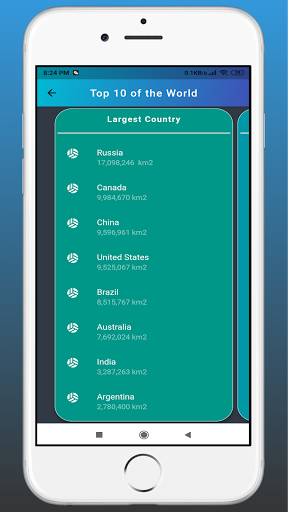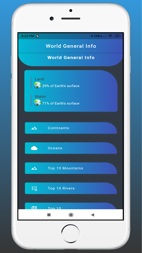 Dünya hakkında genel bilgi içeren Dünya Genel Bilgi Uygulaması ve dünyadaki her ülkenin temel ve çekirdek bilgi verilerini sergileyen