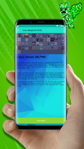 allows transformation into any monster or item. If you want to play for any monster, this morph mod is specially for mcpe!