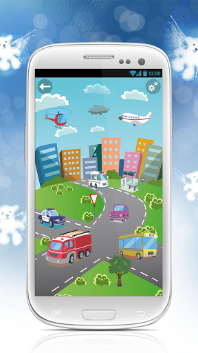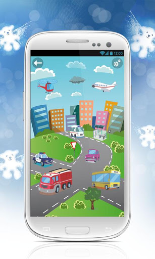 Hareketli şehir sahnesi birçok şekil ve özellik içerir. Otobüs durağı, ambulans, itfaiye kamyonu, araba, polis arabası, şehir ağaçları, yağmur, uçak, otobüs ve helikopter ile etkileşimli eğlenin.