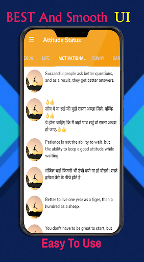 This app contains Hindi and English Language Status for all Social Media Apps. Keep updating your whats app status on famous social apps with the help of this app.