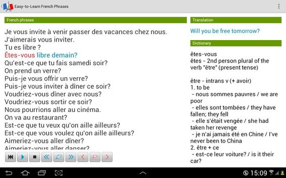 You just touch the French text with one or two fingers and listen to the word or phrase. There is also a convenient toolbar that allows you to manage the program by one hand and gives you the opportunity to listen to a phrase or single words.