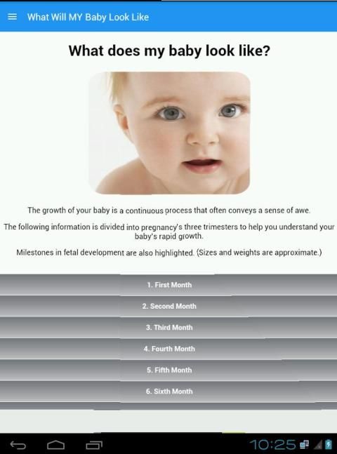 What does my baby look like is an app that goes through yeach stages of pregnancy so you know what to expect from the very beginning ( conception ) right through the finals stages.