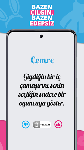 Edepsiz oyunlarımız çiftlere ideal olması için de tasarlandı. Sevgilinle oynayacağın hızlı ve bir seksi Doğruluk mu Cesaretlilik mi oyununun çılgın davranışlara yol açacağı garantidir. Şehvetli cesaretliliklerimiz ve tahrik eden sorularımız yatak odasında işleri kızıştıracak. Örnek mi? “Çok sıcakladıysa… arasında bir buz küpünü kaydır” İşi ne kadar ileri götüreceğiniz ikinize bağlı…