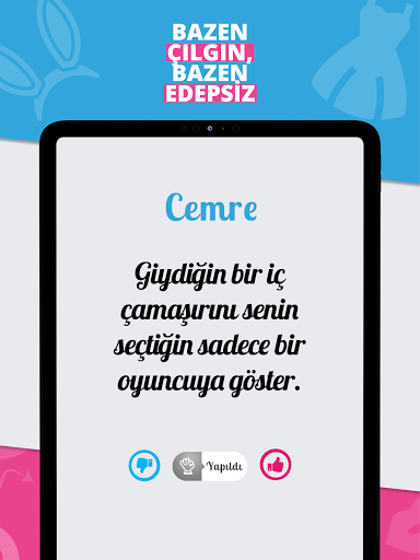 O kadar fazla partiye gittiniz ki modunuzu ve kahkahalarınızı devam ettirmenin zor olabileceğini biliyorsunuz. Edepsiz doğruluk mu cesaretlilik mi oyunumuzu arkadaşlarınla – kızlar VE erkekler – oynamak tüm bu tabuları yıkacak. İnsanları hemen aptalca davrandır. Bu parti uygulaması yetişkinler TARAFINDAN ve yetişkinler İÇİN oluşturuldu!