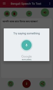 ~ Speak in Bengali App is easy Google Bengali Speech to Text. Speak out any Words and Sentences in Bengali and it will be written in Bengali Text. You can save your speech text. Copy to clipboard. Edit, Delete and Share.