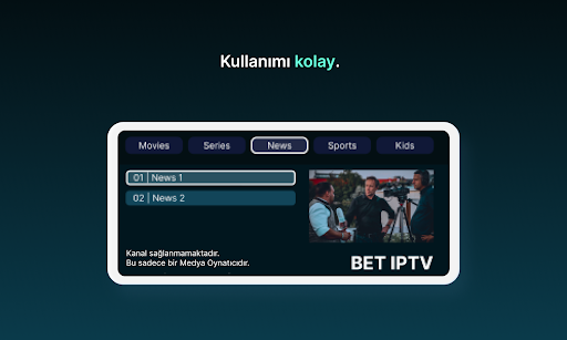 BET IPTV, kullanıcı dostu bir şekilde tasarlanmıştır. Uygulamamız, herkesin favori içeriklerini kolayca bulup keyfini çıkarabileceği sezgisel bir arayüze sahiptir. Teknolojiyle haşır neşir olan bir kullanıcı veya IPTV konusunda yeni biri olun, BET IPTV sorunsuz ve zahmetsiz bir deneyim sunar.