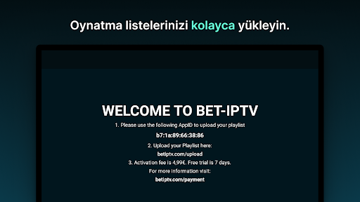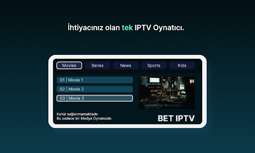 *Kanal veya Çalma Listesi ile ilgili herhangi bir bilgi verilmeyecek ve Kanal/Çalma Listesi talepleri dikkate alınmayacaktır. Ayrıca, BET IPTV olarak, uygulamamızda telif hakkıyla korunan materyallerin kullanımını onaylamıyoruz.
