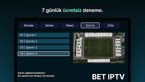 BET IPTV'yi şimdi indirin ve hızlı, güvenilir yayın, güzel tasarım ve üstün kaliteyle IPTV'nin tam potansiyelini keşfedin. 7 günlük ücretsiz deneme fırsatını kaçırmayın - bugün favori içeriklerinizi keşfetmeye ve keyfini çıkarmaya başlayın!