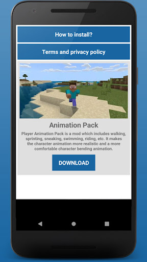 Uygulama animasyon oynatıcı mod minecraftis bir animasyon paketi wich yürüme, sprint, gizlice, yüzme, binicilik vb. İçeriyor.