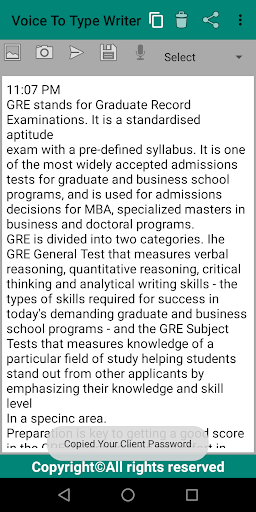 Voice to type writer or Speek to text converter. Quickly write any document. write cv or application or any document.Save your type or document. Can you go for use on any social website or MS office word by this application converted text.