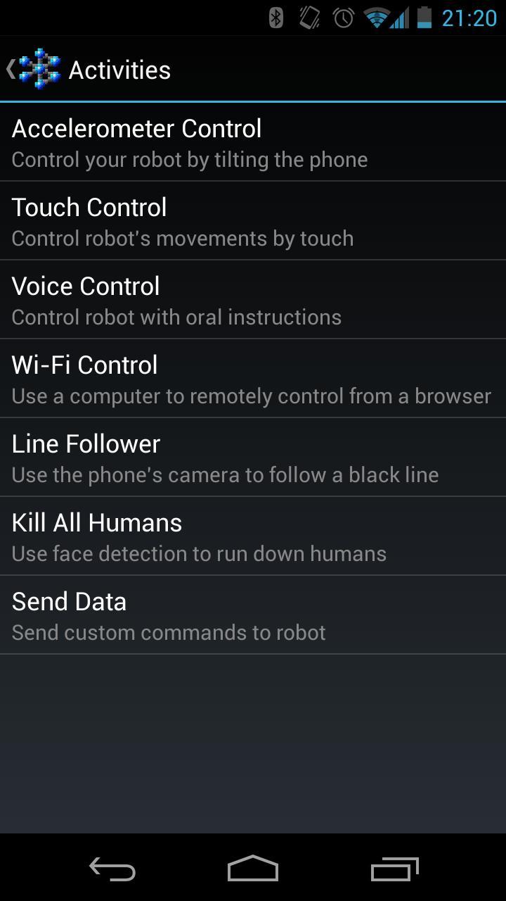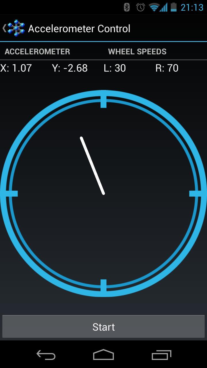 Blueberry is an application that uses the phone's Bluetooth feature to connect to a Bluetooth enabled device. It is mainly intended to control mobile platforms such as an Arduino with a Bluetooth shield mounted on a platform with two motorized wheels.