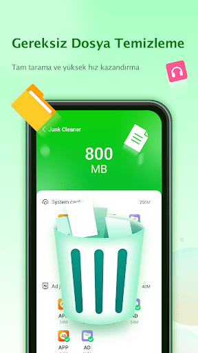 Gereksiz Dosya Temizleme: Telefon belleğinizdeki gereksiz dosyaları kaldırır, derin bir temizlik yapar, RAM'i boşa çıkarır, RAM kullanımını optimize eder